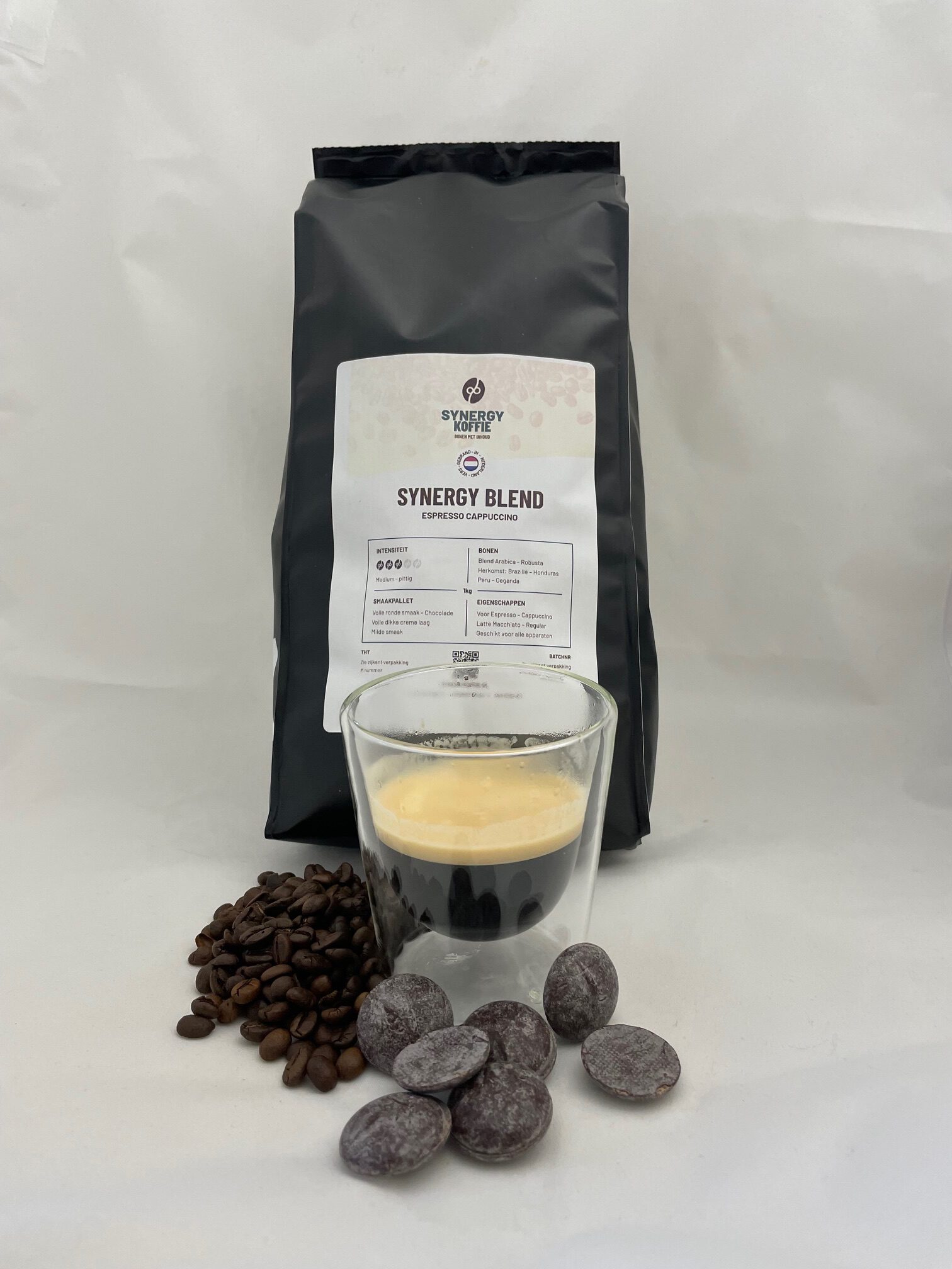 Onze eerste koffie waarmee we onze koffielijn lanceren is de Synergy Blend. Een mix van diverse koffiebonen uit verschillende landen, waardoor we een zeer consistente smaak kunnen garanderen. Perfect voor een breed publiek, en altijd vers gebrand in Nederland.